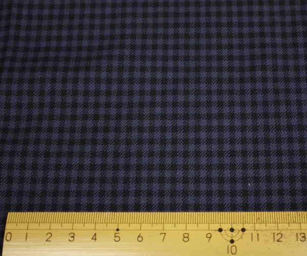布 生地 布地 服地 ウール チェック 解説 少しハリとシャリ感のある、ちょっとダークなブルーとブラックの落ち着いたミニミニ チェック柄 中肉程度のウール100% 先染めツイル(綾織り)生地。