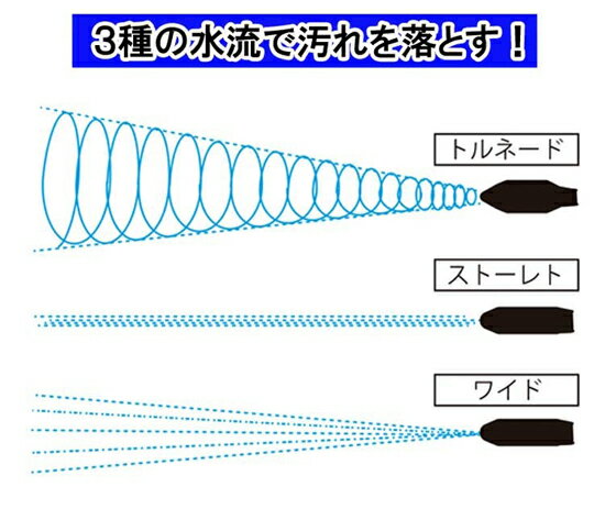 【9】トリプル水流(ストレート、ワイド、トルネード)。